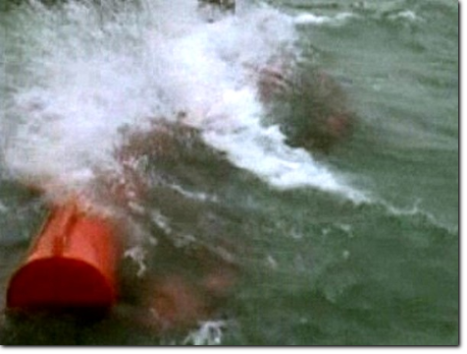 Affondamento al varo: ben due metri cubi d'acqua entrano dai fori della pinna, conferendo molta inerzia; le due estremità laterali sommerse ancorano il modulo nell'acqua.