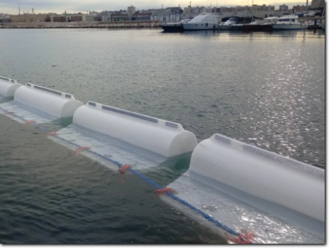 Attenuazione del moto ondoso, barriera galleggiante reversibile